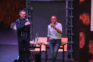 Dominik Bloh hat eindrucksvoll seine Lebensgeschichte erzählt, die von Mut und Courage handelt, sich und sein Leben zu ändern. Damit und mit der Sprache der Jugendlichen hat er die Zuhörerinnen und Zuhörer, die stets Fragen zu seinem Leben stellen konnten, in der Aula in seinen Bann gezogen. (Rbi)